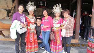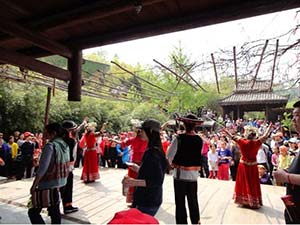 阳光明媚的天气,欢声笑语中我们来到九顶塔下。在千年古塔的四周,分布了16个少数民族村寨,沿路有蜿蜒、错落的少数民族山寨,在这里我们了解到各个民族的建筑、歌舞、服饰、餐饮文化等,体验每个民族不同的风土人情。