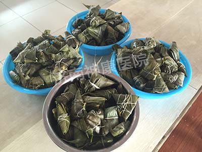 在大饱口福的同时还能亲自体验一把包粽子的乐趣,让患者在医院也能感受端午节的温馨融洽。